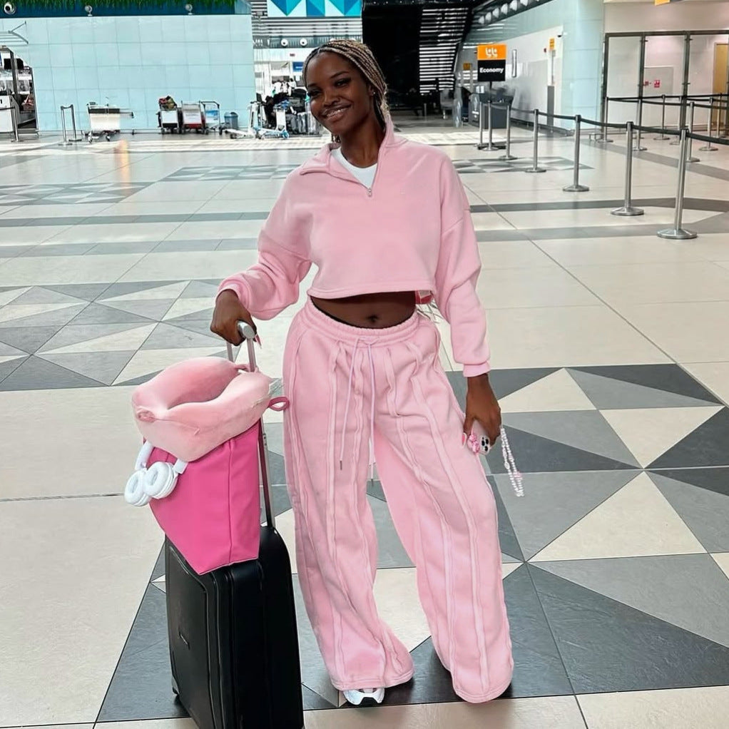 Ensemble Femme 2 Pièces – Sweat Crop & Pantalon Large Casual Chic