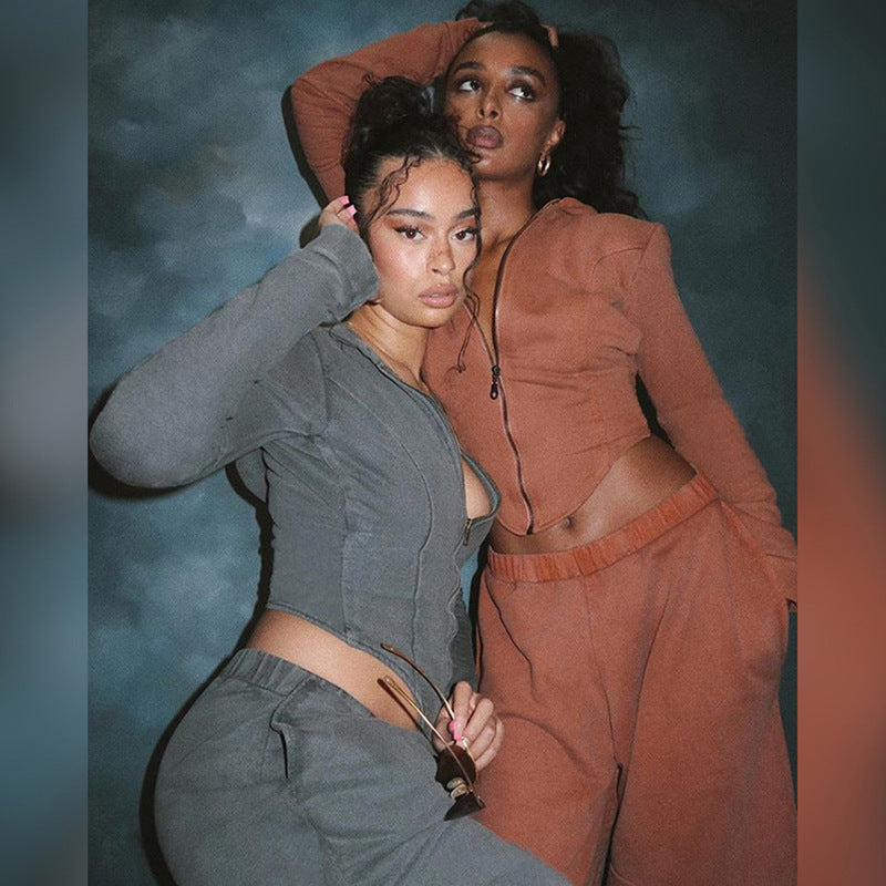 - Ensemble 2 pièces : pantalon taille haute + veste crop