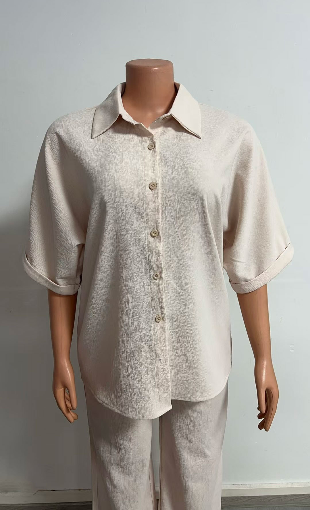 Ensemble Tendance Femme 2 pièces – Chemise ample + Pantalon fluide | Look chic & décontracté