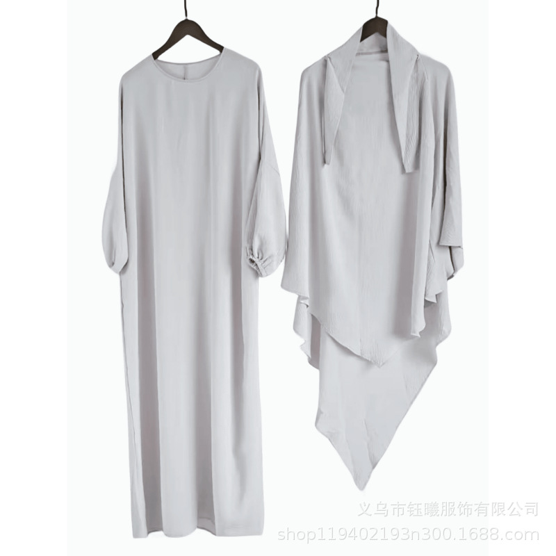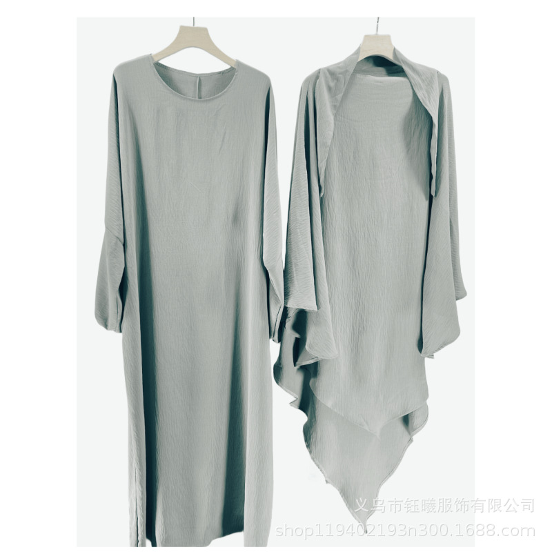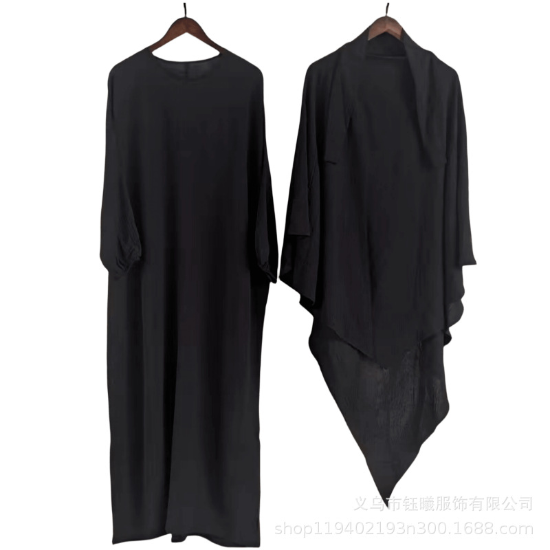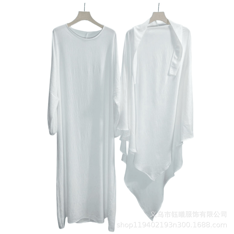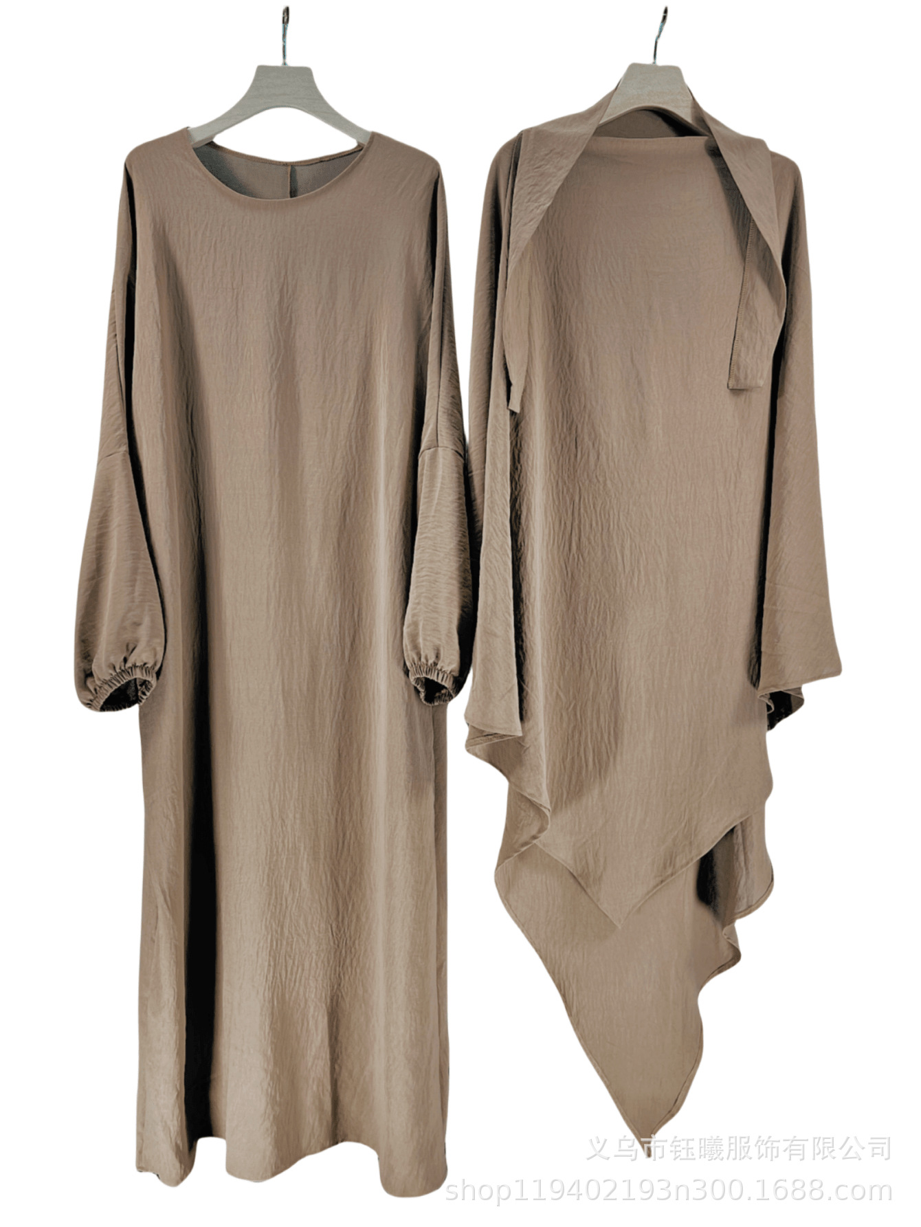 ✅ Ensemble 2 pièces : hijab cape long + robe large assortie