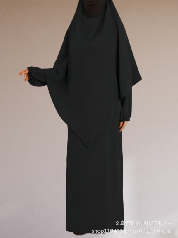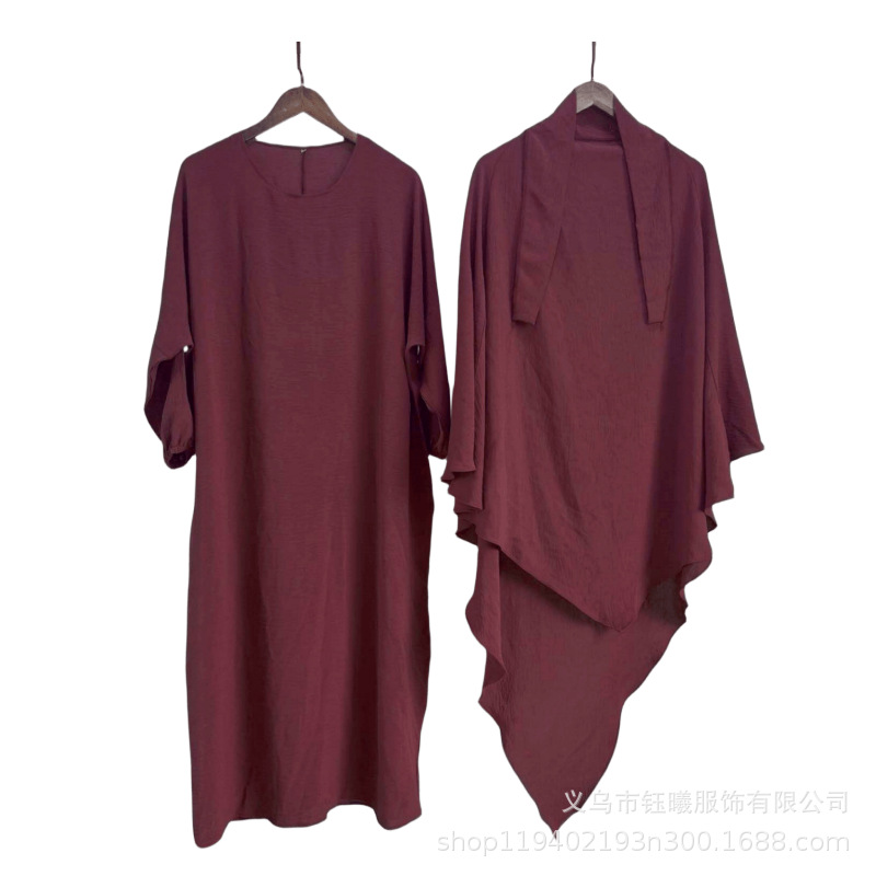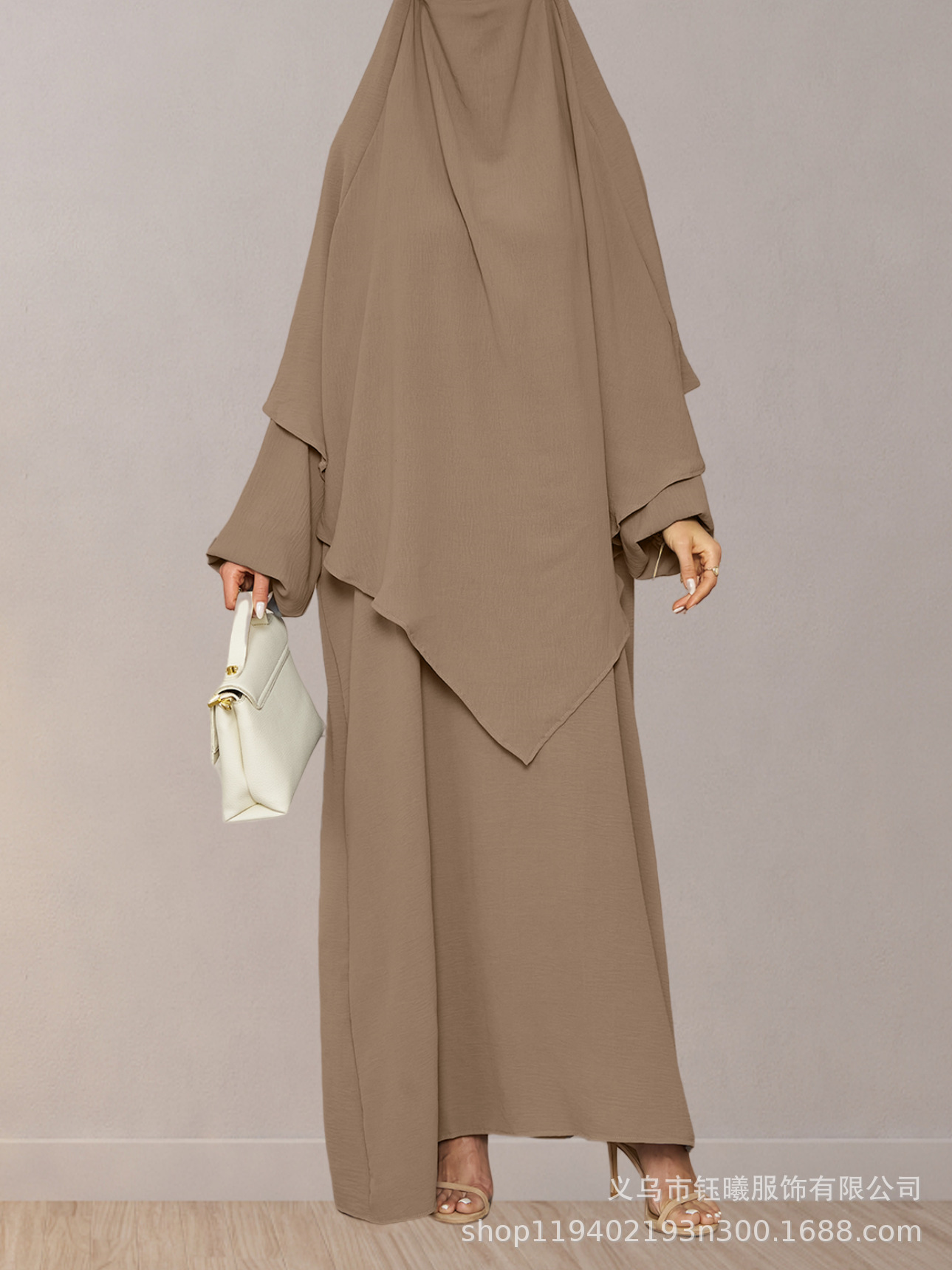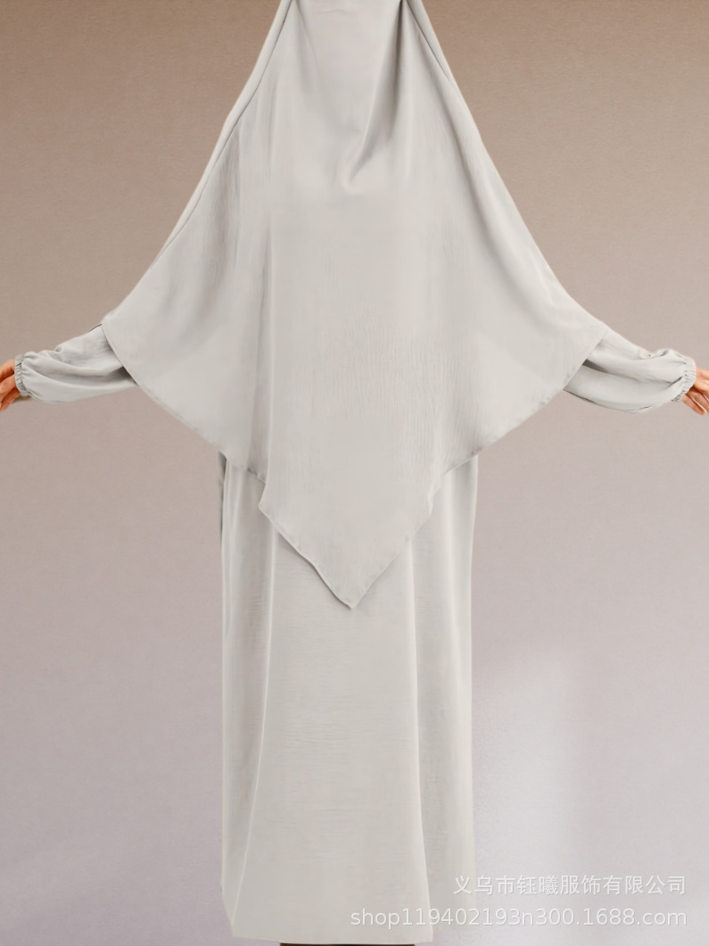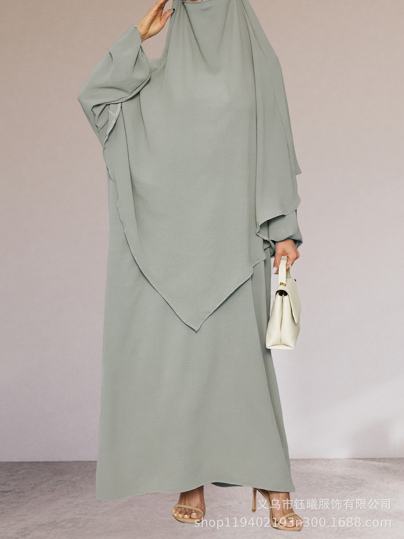✅ Ensemble 2 pièces : hijab cape long + robe large assortie