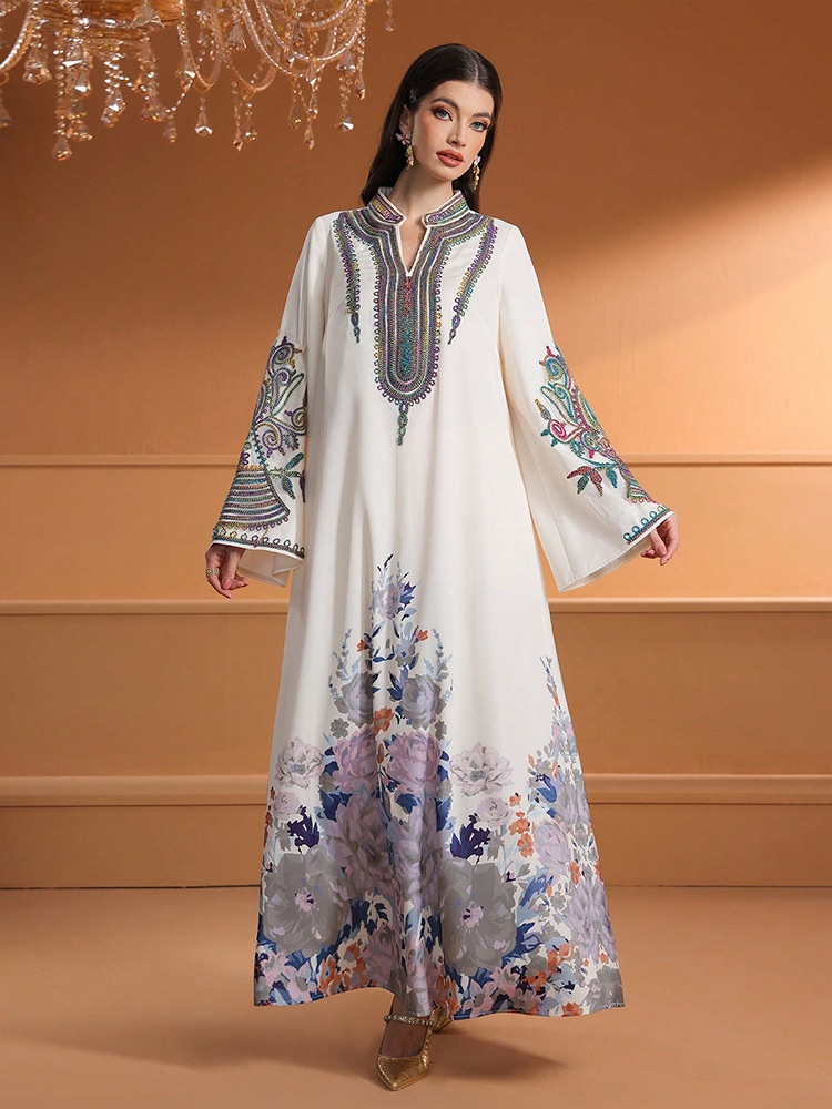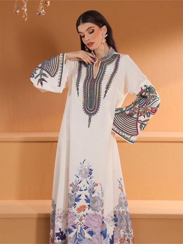 Offrez-vous une allure majestueuse avec cette robe élégante et fluide, inspirée du style Dubai. Son design raffiné avec appliques florales délicates et son tissu léger en font une pièce parfaite pour les occasions spéciales, les soirées, ou même un look chic au quotidien.
