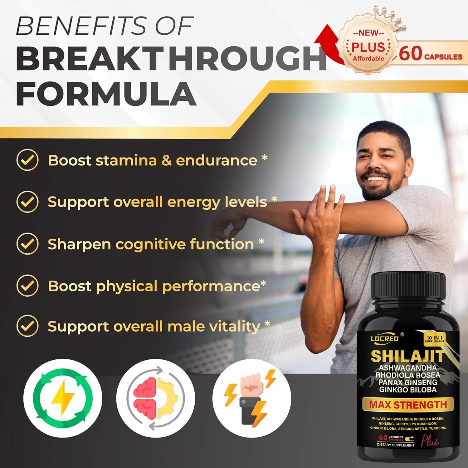 Shilajit & Ashwagandha – Énergie, Vitalité & Bien-être (60 gélules)
